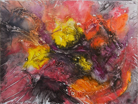 La couleur fluide est insérée entre le support et une feuille souple, elle circule par capillarité et les pigments se séparent  une fois sec la feuille est retirée